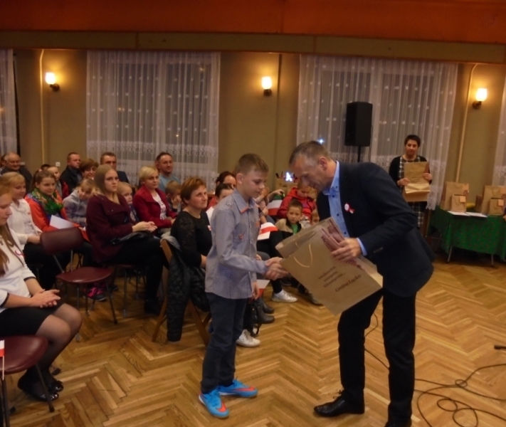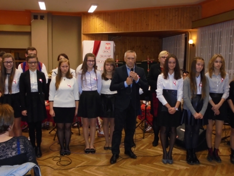Następnie wystąpiła młodzież z Zespołu Szkolno-Gimnazjalnego w Łącku w specjalnie przygotowanym montażu słowno-muzycznym, w którym została przedstawiona historia Polski z okresu zaborowego, aż do odzyskania niepodległości w 1918 r., okraszona piękną poezją oraz utworami patriotycznymi. W trakcie tej wyjątkowej uroczystości zostali również nagrodzeni laureaci i uczestnicy gminnych konkursów organizowanych przez Gminny Ośrodek Kultury w Łącku. Nagrody i dyplomy wręczył wójt gminy Łącko Jan Dziedzina.