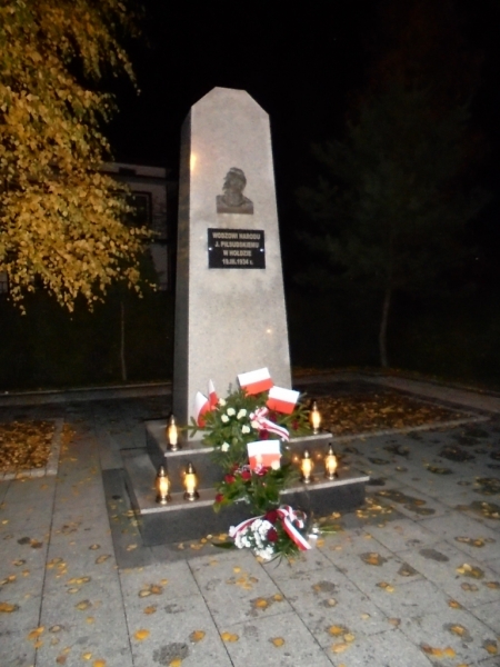 Po zakończeniu uroczystości delegacja samorządowa oraz wszyscy chętni zgromadzili się pod pomnikiem Marszałka Józefa Piłsudskiego, aby złożyć kwiaty, chwilą ciszy uczcić pamięć tych, którzy swoje życie oddali za naszą niepodległość, a następnie wspólnie odśpiewać kilka piosenek żołnierskich.