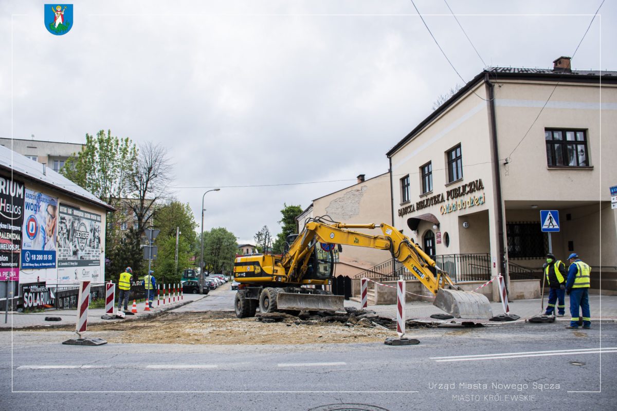 12.05 rozpoczęły się prace przy odbudowie skrzyżowania ul.Lwowska – Kraszewskiego w Nowym Sączu, które zostało zniszczone podczas awarii wodociągu.