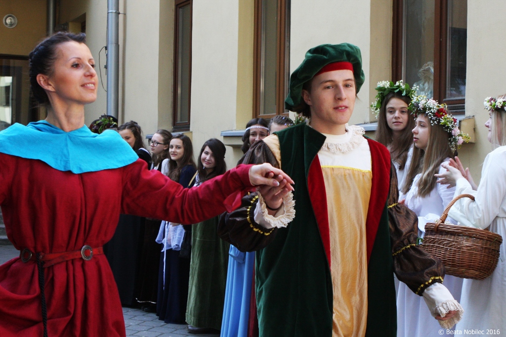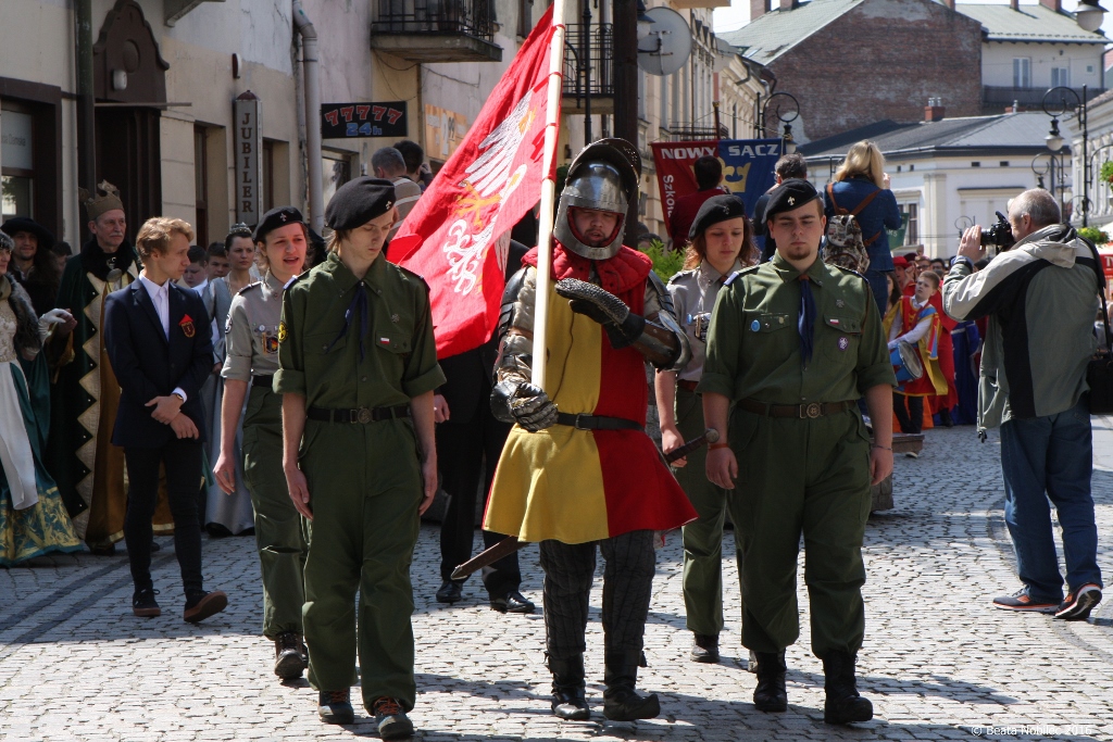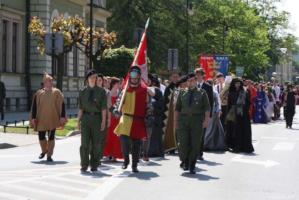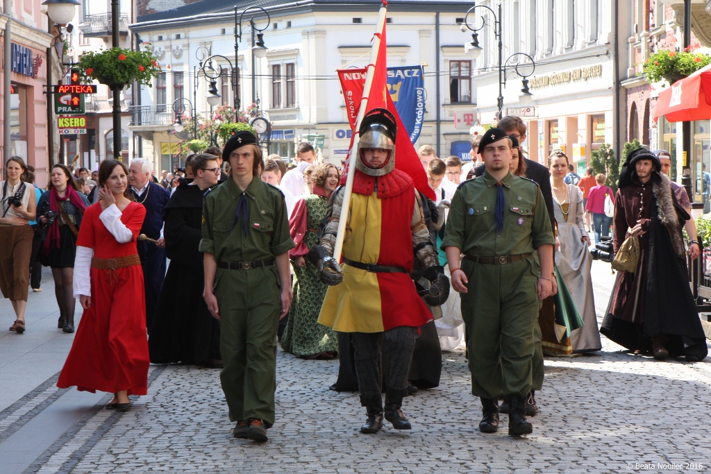Król z królową, rycerze, damy dworu i sam Jan Długosz o tylko niewielka część barwnego korowodu, jaki przeszedł w piątek ulicami Nowego Sącza. Uczniowie Zespołu Szkół Ogólnokształcących nr 1 i innych szkół pokazali sobie i mieszkańcom miasta, jak można wskrzesić przeszłość.