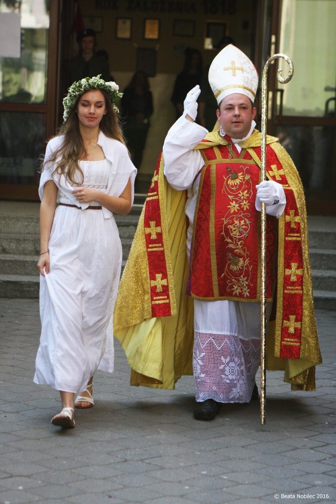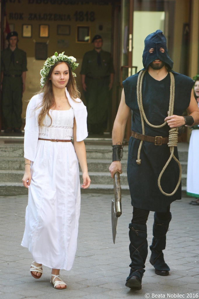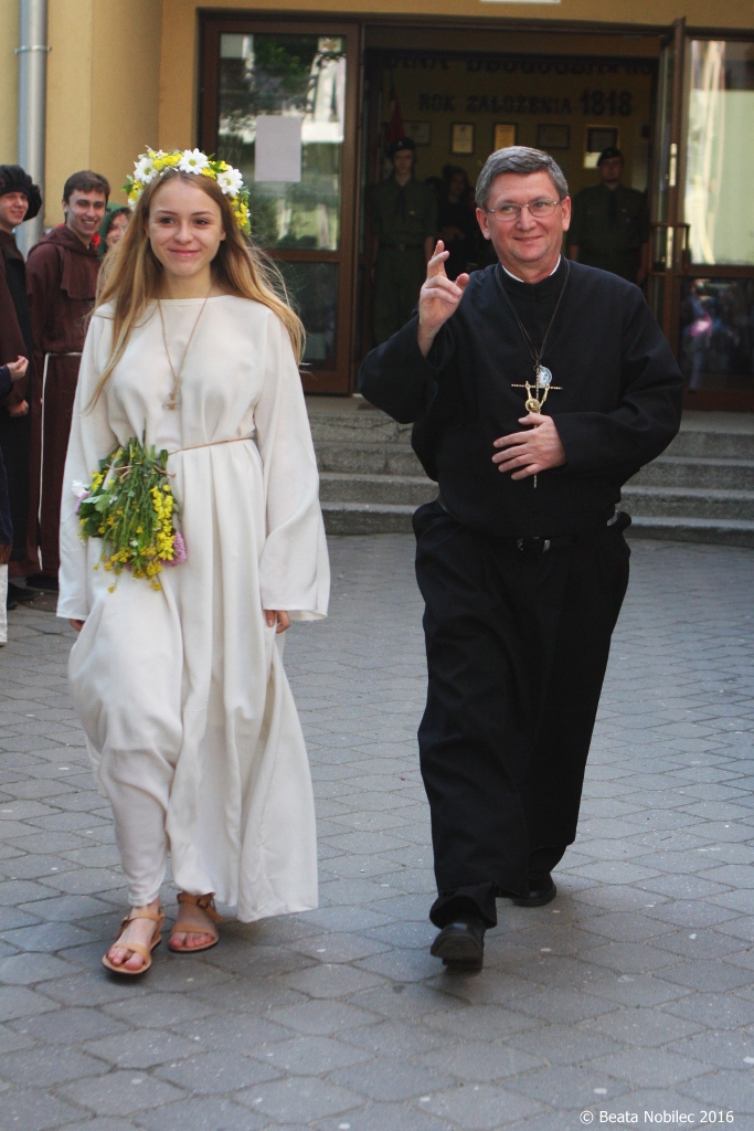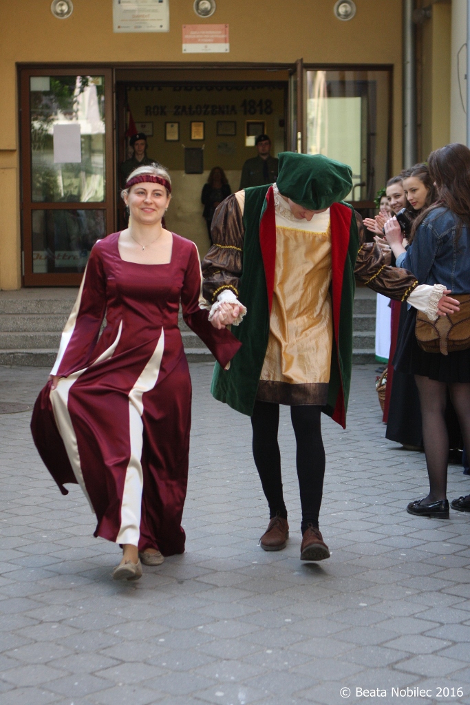 Dyrektor „”Długosza” Aleksander Rybski podkreślił ogromne zainteresowanie żywą lekcją długoszowej historii. – Dość powiedzieć, że w tym roku jedna trzecia grona pedagogicznego była przebrana w stroje historyczne – podkreślił Aleksander Rybski. On sam wcielił się w postać króla Kazimierza Jagiellończyka. Zarówno stroje z epoki, jak i królewski sztandar, zostały odtworzone na wzór oryginałów.