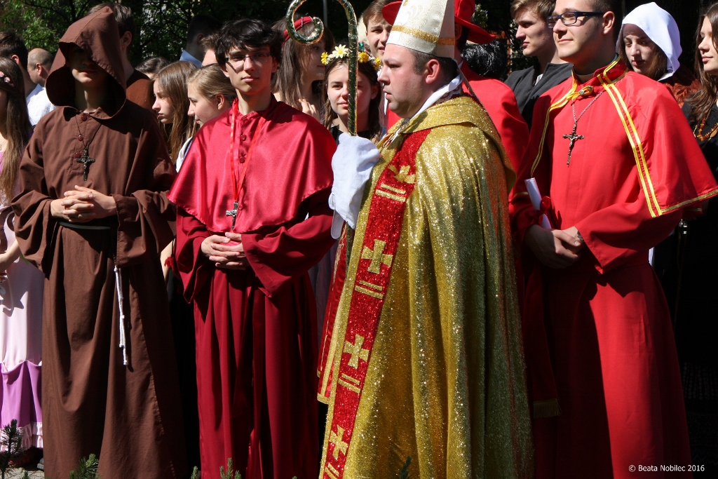 Uroczystość na Rynku zakończył pokaz walki średniowiecznych rycerzy. Niekłamany aplauz wzbudziły także średniowieczne tańce i pokaz dawnej mody. Po zakończeniu uroczystości orszak wrócił do szkoły. W orszaku udział wzięły także inne szkoły sądeckie, które mają patronów historycznych.
