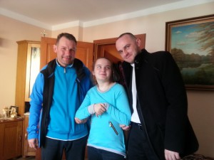 Ks Marcin Kawa z Kamienicy, główny pomysłodawca i organizator Dekanalnej Dyskoteki Charytatywnej oraz Jan Mrówka Koordynator Hali Łącko odwiedzili Karolinę Tomasiak w jej domu w Obidzy i przekazali pieniądze, które młodzież „wytańczyła”