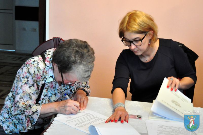 70-letnia mieszkanka DPS przy ul. Nawojowskiej 155 w Nowym Sączu, Aniela Tatur, w obecności zastępcy prezydenta Artura Bochenka oraz notariusza Anny Smal – Rajcy, przekazała na rzecz miasta swoje mieszkanie.