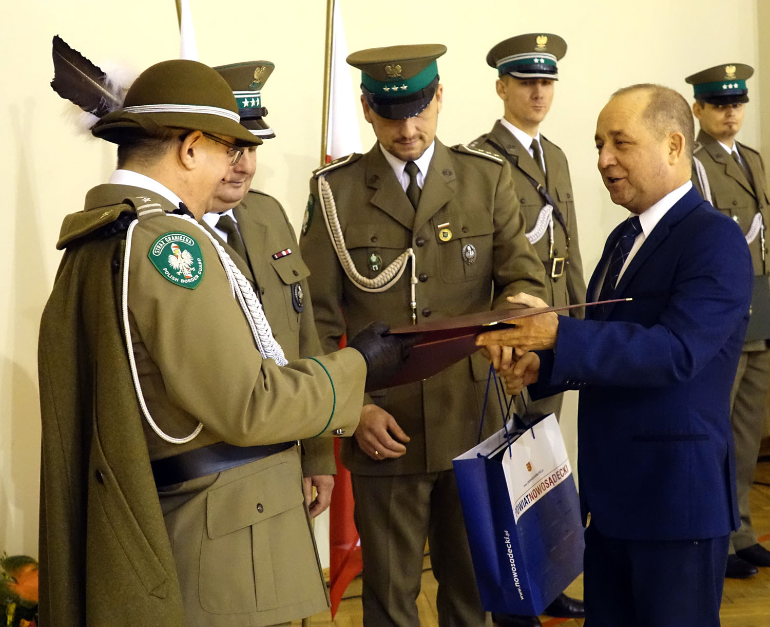 – Z okazji rozformowania jednostki i pożegnania sztandaru Karpackiego Ośrodka Wsparcie Straży Granicznej w Nowym Sączu pragnę wyrazić Panu podziękowania za działania na rzecz bezpieczeństwa mieszkańców Ziemi Sądeckiej w trudnych dla Straży Granicznej chwilach oraz dobrą współpracę z samorządem powiatowym – mówił starosta Marek Pławiak. – Pański sposób podejścia do pracy i oddanie lokalnej społeczności mogą być wzorem dla młodych oficerów i przyszłych funkcjonariuszy Karpackiego Oddziału Straży Granicznej. W dniu zakończenia służby na Sądecczyźnie życzę Panu realizacji planów życiowych oraz wszelkiej pomyślności w życiu zawodowym i prywatnym.