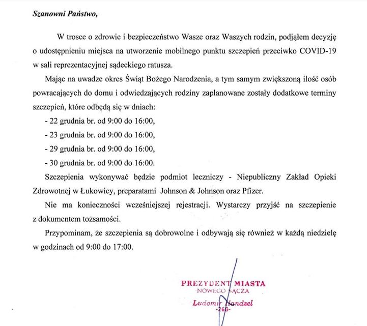 Prezydent uruchamia mobilny punkt szczepień w Ratuszu
