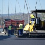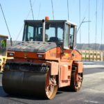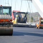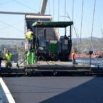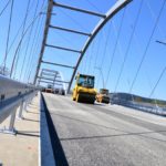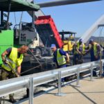 Robotnicy kładą ostatnią warstwę asfaltu na moście heleńskim