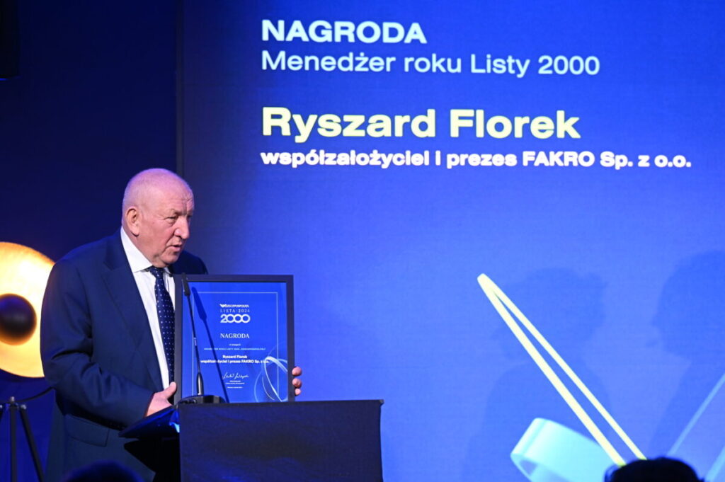 Podczas uroczystej gali wręczenia nagród Listy 2000 „Rzeczpospolitej” uhonorowano najlepsze polskie firmy i ich liderów, doceniając ich wkład w rozwój gospodarczy kraju oraz budowanie silnej pozycji rodzimych marek na arenie międzynarodowej. Wyróżnienie w kategorii Menedżer Roku otrzymał Ryszard Florek, założyciel i prezes FAKRO, który od lat promuje uczciwą konkurencję oraz edukację ekonomiczną jako kluczowe elementy sukcesu gospodarczego.