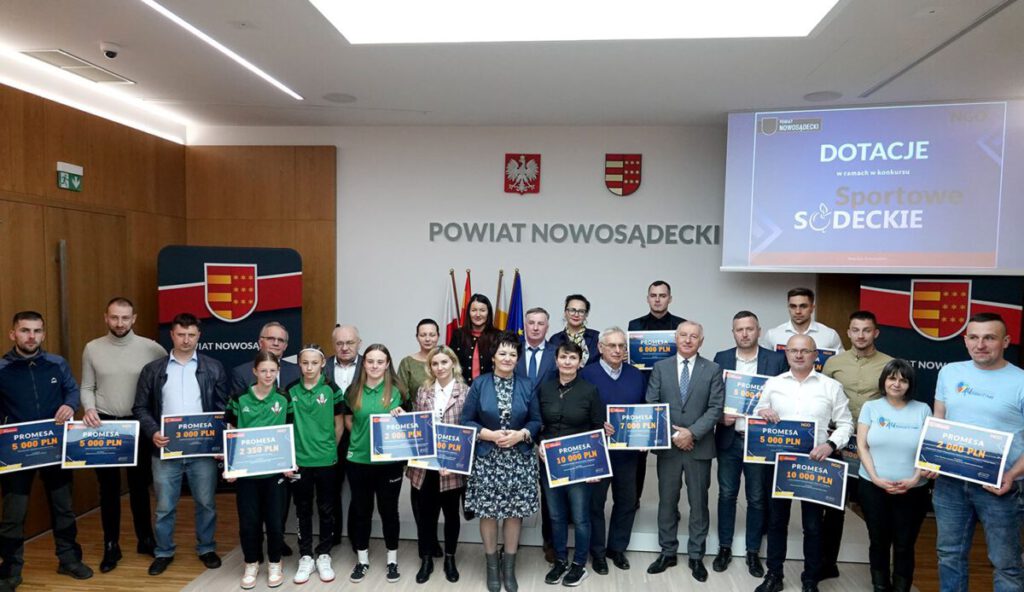 Konkurs SPORTOWE SĄDECKIE: 136 000 zł na 32 zadania: Fundacja Klub Kolarski Agnieszka Skalniak w Żegiestowie: 12 000 zł, Uczniowski Klub Sportowy Gladiator w Binczarowej: 1 600 zł, Ludowy Uczniowski Klub Sportowy Nowosądeczanin w Powroźniku: 2 000 zł, Uczniowski Klub Sportowy RUCZAJ w Żegiestowie: 2 000 zł, Stowarzyszenie Sekcja Brydża Sportowego ALF w Nowym Sączu: 2 000 zł, Uczniowski Klub Sportowy ARCUS Krynica: 2 000 zł, Uczniowski Klub Modelarski ORION w Muszynie: 4 000 zł, Uczniowski Klub Sportowy Akademia Piłkarska CHAMPIONS CHEŁMIEC w Świniarsku: 4 050 zł, Uczniowski Klub Sportowy GOL ŁĄCKO: 15 000 zł, Fundacja ,,Ja też mam marzenia” w Nowym Sączu: 2 000 zł, Parafialny Klub Sportowy „JAWORZE” w Ptaszkowej: 3 000 zł, Stowarzyszenie „Rodzin i Przyjaciół Osób w Spektrum Autyzmu AUtopozytywni” w Nowym Sączu:  2 000 zł, Stowarzyszenie Perły Małopolski w Brzączowicach: 3 000 zł, Uczniowski Klub Sportowy „Bociek” w Wojnarowej: 2 000 zł, Fundacja Po Zdrowie Do Natury w Kamiannej: 2 000 zł, FUNDACJA ONLY FUTBOL w Stróżach: 2 000 zł,  Uczniowski Klub Sportowy „Talent” w Stróżach: 2 000 zł, Oddział Powiatowy Związku Ochotniczych Straży Pożarnych RP w Nowym Sączu: 5 000 zł, Klub Sportowy STARÓWKA Nowy Sącz: 2 350 zł, Miejski Klub Sportowy „POPRAD” MUSZYNA: 5 000 zł, Okręgowe Zrzeszenie LUDOWE ZESPOŁY SPORTOWE w Nawojowej: 4 000 zł, Stowarzyszenie VISEGRAD MARATON RYTRO: 5 000 zł, Ludowy Klub Sportowy NAWOJ Nawojowa: 2 000 zł, Uczniowski Ludowy Klub Sportowy w Korzennej: 6 000 zł, Fundacja Sądecka w Niskowej: 8 000 zł, Klub Sportowy „START” w Nowym Sączu: 5 000 zł, Ludowy Uczniowski Klubu Sportowego „Wietrznice” w Zabrzeży: 10 000 zł, Klub Sportowy Jaworzynka-Gołkowice w Gołkowicach Górnych: 5 000 zł, Fundacja Festiwal Biegów w Niskowej: 7 000 zł.   Konkurs ZDROWE SĄDECKIE: 24 200 zł na 9 zadań: Fundacja Pomocy Osobom z Autyzmem „Mada” w Nowym Sączu: 3 000 zł, Stowarzyszenie Sądeckie Forum Kobiet w Nowym Sączu: 3 000 zł, Stowarzyszenie Kobiet do Walki z Rakiem Piersi Europa Donna w Nowym Sączu: 3 500 zł, Fundacja Po Zdrowie Do Natury w Kamiannej: 3 000 zł, Sądeckie Wodne Ochotnicze Pogotowie Ratunkowe w Nowym Sączu: 1 000 zł, Polski Klub Ekologiczny Koło w Krynicy-Zdroju: 1 200 zł, Ochotnicza Straż Pożar w Librantowej: 3 000 zł, Fundacja Sądecka w Niskowej: 3 000 zł.