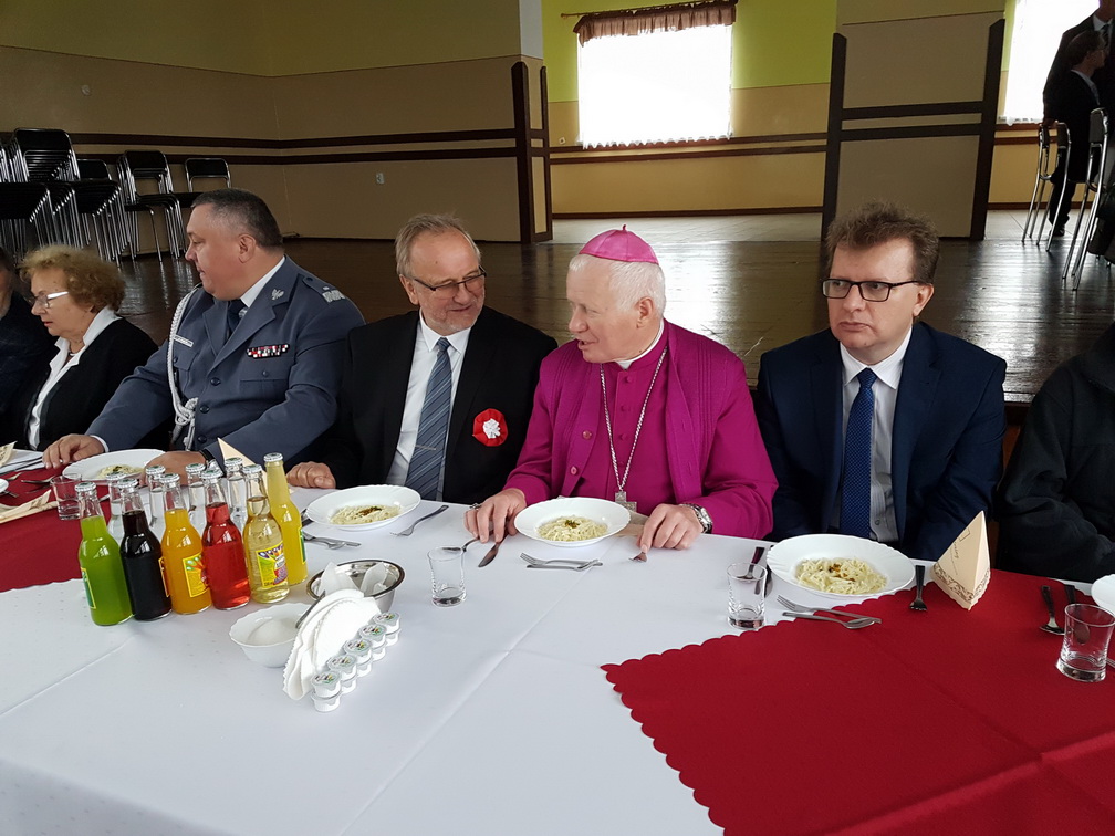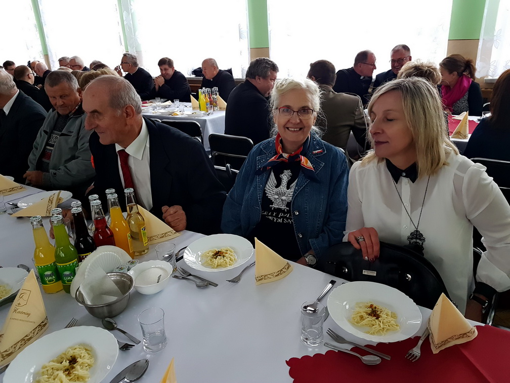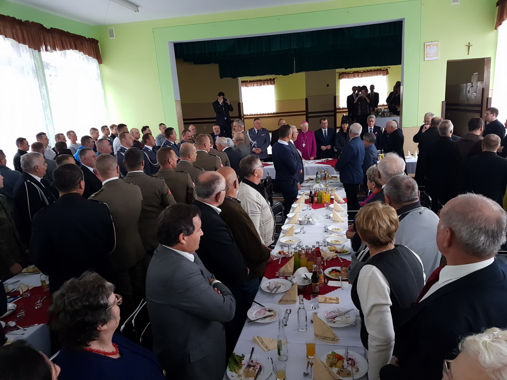 Po oficjalnych uroczystościach uczestnicy zostali zaproszeni przez ks. prałata na kanapki, ciasto i obiad, podczas którego ks. Homik wręczył sponsorom pisemne podziękowania. Uczestnicy mogli też kupić figurki przedstawiające kapelana „Żandarmerii”.
