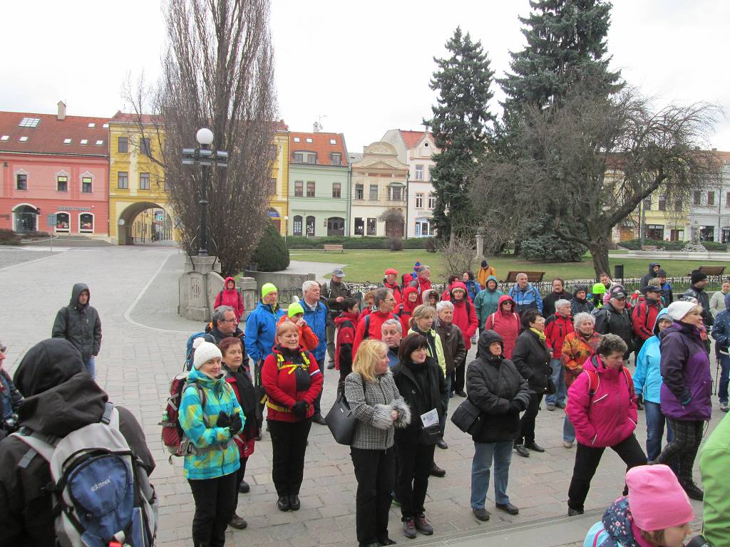 Przywitał nas Prezes koła turystycznego Tatran Preszow Juraj Fiľakovský. Uściskom nie było końca, ale czas naglił – trzeba było realizować program. Turyści z Nowego Sącza zostali zaproszeni do sali w ratuszu, gdzie przywitał Ich Józef Muransky – dyrektor wydziału szkolnictwa, kultury i ruchu drogowego. Była krótka relacja z dotychczasowej współpracy polsko-słowackiej oraz przedstawienie planów na dalsze, wspólne wędrowanie. Wróciliśmy przed gmach ratusza, gdzie zgromadziło się już sporo ludzi, od malutkich dzieci w wózkach po osoby w sędziwym wieku.