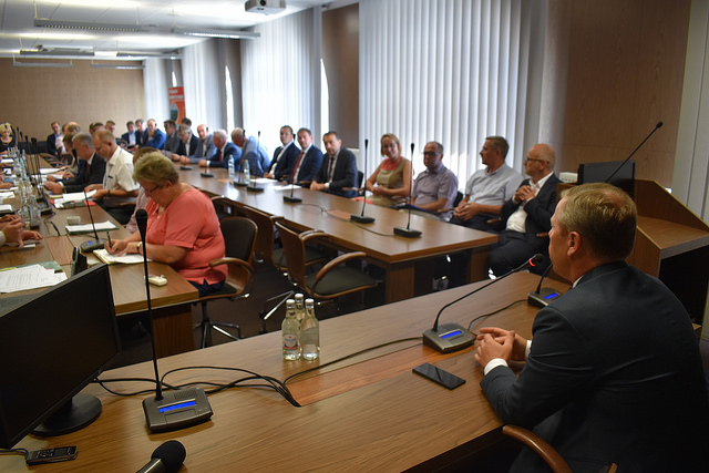 Spotkanie to miało na celu podsumowanie działań ratowniczych oraz omówienie i wstępne zinwentaryzowanie przez samorządy powstałych szkód i potrzeb, a także przypomnienie samorządom procedur dotyczących pozyskiwania środków z rezerwy celowej budżetu państwa na przeciwdziałanie i usuwanie skutków klęsk żywiołowych oraz trybu i zasad dotyczących dotacji celowych z budżetu państwa na dofinansowanie zadań własnych związanych z remontem i odbudową obiektów budowlanych zniszczonych lub uszkodzonych w wyniku zdarzeń noszących znamiona klęski żywiołowej.