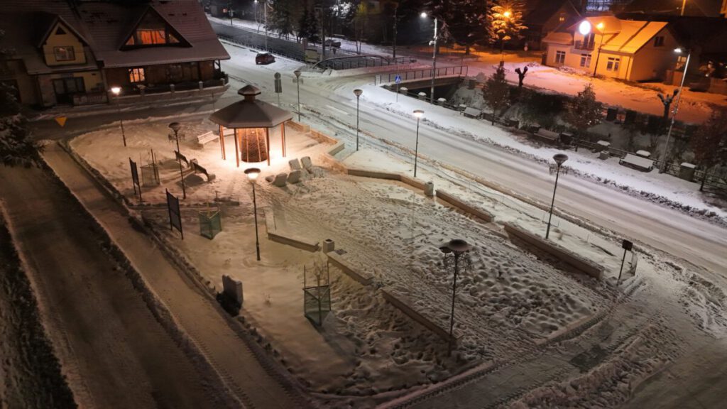 Zobaczmy zatem, jak prezentuje się skwerek w nocnej, zimowej atmosferze.