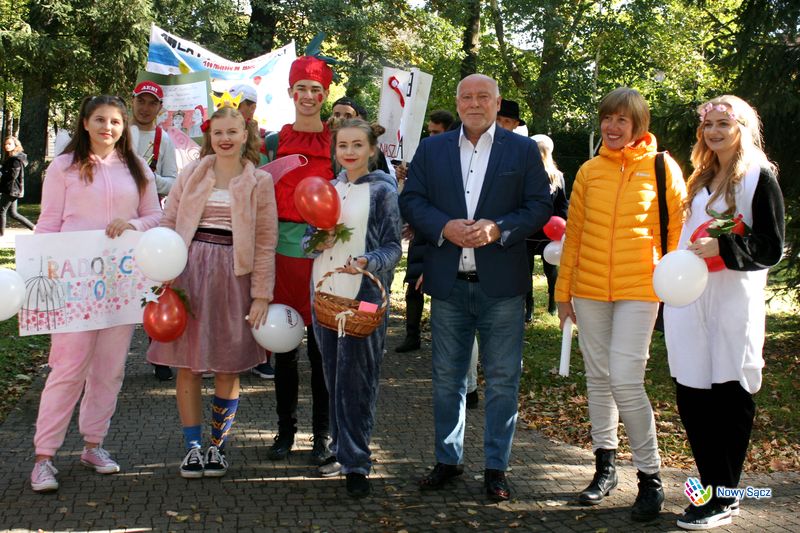 Młodzież z sądeckich szkół już po raz piąty udowadniała sądeczanom, że również i jesienią można być radosnym. W tym roku jest ku temu szczególna okazja – 100-lecie odzyskania przez Polskę niepodległości. Z młodzieżą oraz organizatorami: dyrektor Pałacu Młodzieży w Nowym Sączu Milenią Małecką – Rogal, artystą plastykiem Stanisławem Szarkiem oraz przedstawicielami Sądeckiego Ośrodka Interwencji Kryzysowej spotkał się na sądeckich Plantach zastępca prezydenta miasta Nowego Sącza Jerzy Gwiżdż.