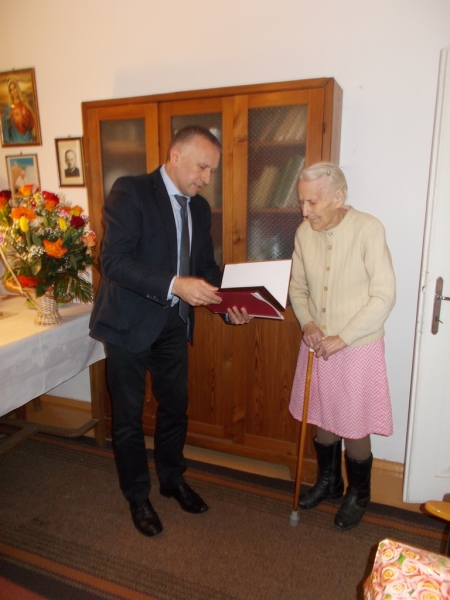 W miniony czwartek w Czarnym Potoku miało miejsce wyjątkowe wydarzenie. Swoje setne urodziny świętowała Pani Maria Kędroń. Z wizytą do Zacnej Jubilatki przybyli: Wójt Gminy Łącko – Jan Dziedzina, Kierownik Urzędu Stanu Cywilnego w Łącku – Beata Faron oraz przedstawiciele Zakładu Ubezpieczeń Społecznych Oddział Nowy Sącz. W uroczystości uczestniczyła także rodzina Jubilatki. Wójt Gminy Łącko złożył serdeczne życzenia i odczytał listy gratulacyjne od Premier RP – Beaty Szydło oraz Wojewody Małopolskiego – Józefa Pilcha. Wszyscy goście życzyli Pani Marii dobrego zdrowia oraz radosnych dni, pełnych życzliwości i miłości osób najbliższych.