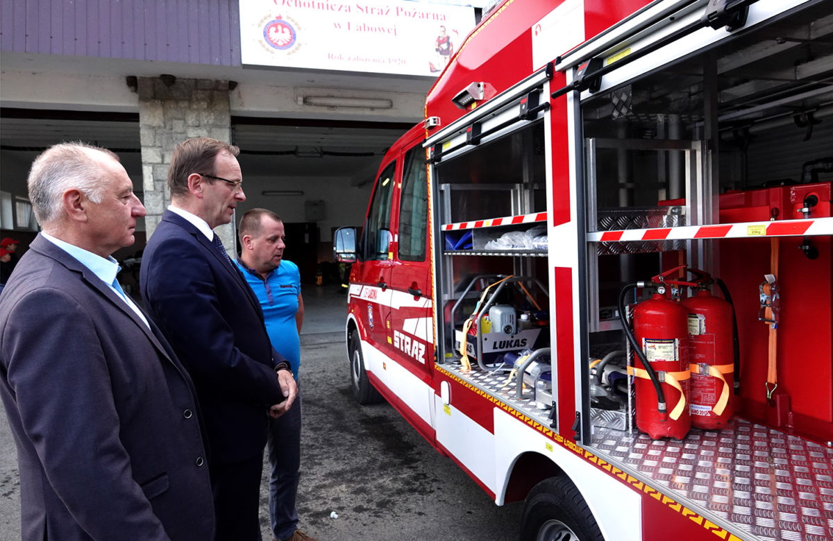 Niezwykłą oprawę miała wczorajsza strażacka impreza w gminie Łabowa. Ochotnicza Straż Pożarna otrzymała nowoczesny samochód współfinansowany w dużej części ze środków Funduszu Sprawiedliwości, którego dysponentem jest Minister Sprawiedliwości. Samochodem, z wielką pompą, zajechała na plac przed remizą wójt gminy Marta Słaby.