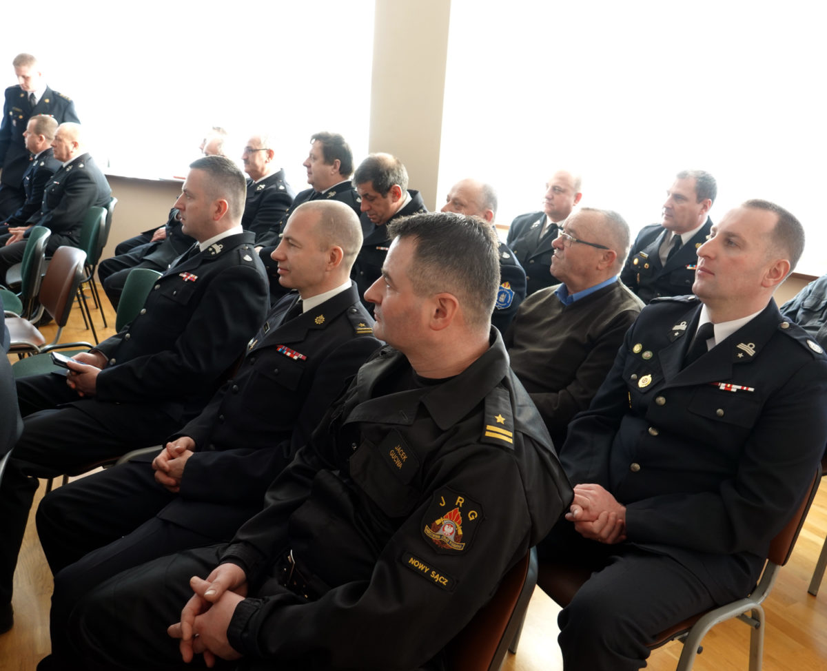 Na spotkaniu obecny był Starosta nowosądecki Marek Kwiatkowski i przewodniczący Rady Powiatu Nowosądeckiego Roman Potoniec, poseł Arkadiusz Mularczyk, przedstawiciel wojewódzkiej PSP w Krakowie st. bryg. Paweł Knapik, przewodnicząca Rady Miasta Nowego Sącza Iwona Mularczyk, wójtowie i burmistrzowie z terenu Powiatu Nowosądeckiego, a także szefowie służb i inspekcji współpracujących ze strażakami. Nie zabrakło także kierownika Powiatowego Centrum Zarządzania Kryzysowego Ryszarda Wąsowicza.