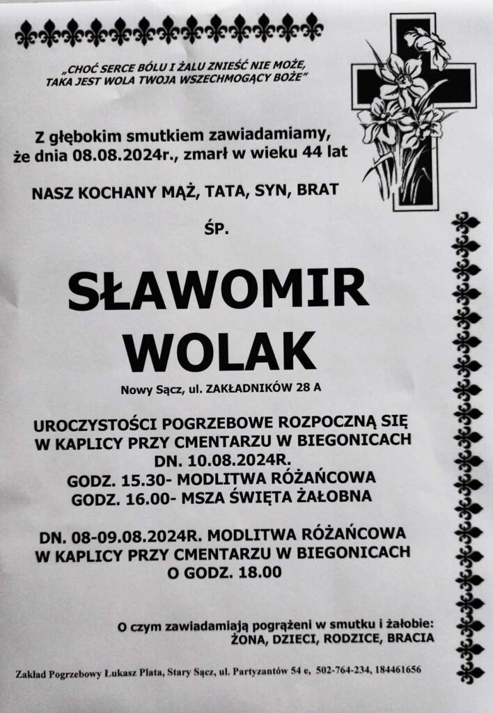 Pogrzeb ś.p. Sławomira odbędzie się 10 sierpnia 2024 o godzinie 16.00 w Kaplicy przy Cmentarzu Parafialnym w Biegonicach. CZEŚĆ JEGO PAMIĘCI