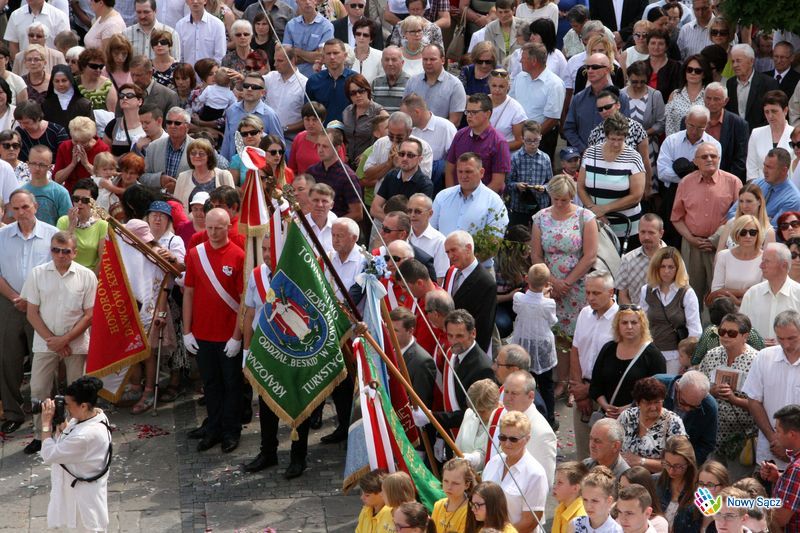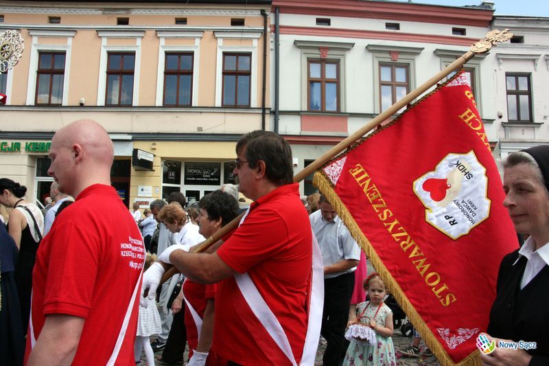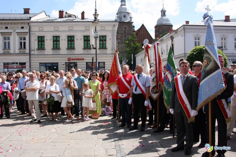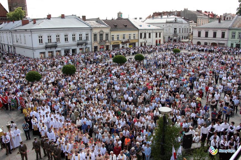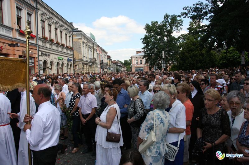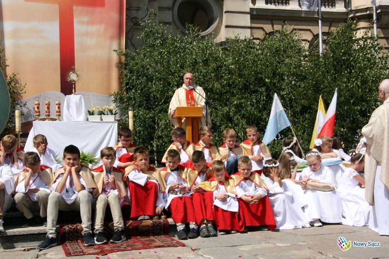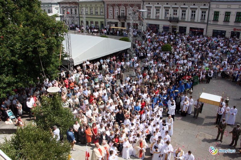 Sądeczanie dziękując Bogu za dar Eucharystii wyruszyli dzisiaj w procesji z Bazyliki Św. Małgorzaty do 4 ołtarzy wokół Rynku. Ołtarze przygotowały parafia Ducha Świętego, parafia św. Kazimierza, Cech Rzemiosł Różnych i Kongregacja Kupiecka. Procesja Bożego Ciała na sądeckim rynku należy do największych w diecezji tarnowskiej obok tej, którą organizuje Bazylika Katedralna w Tarnowie.