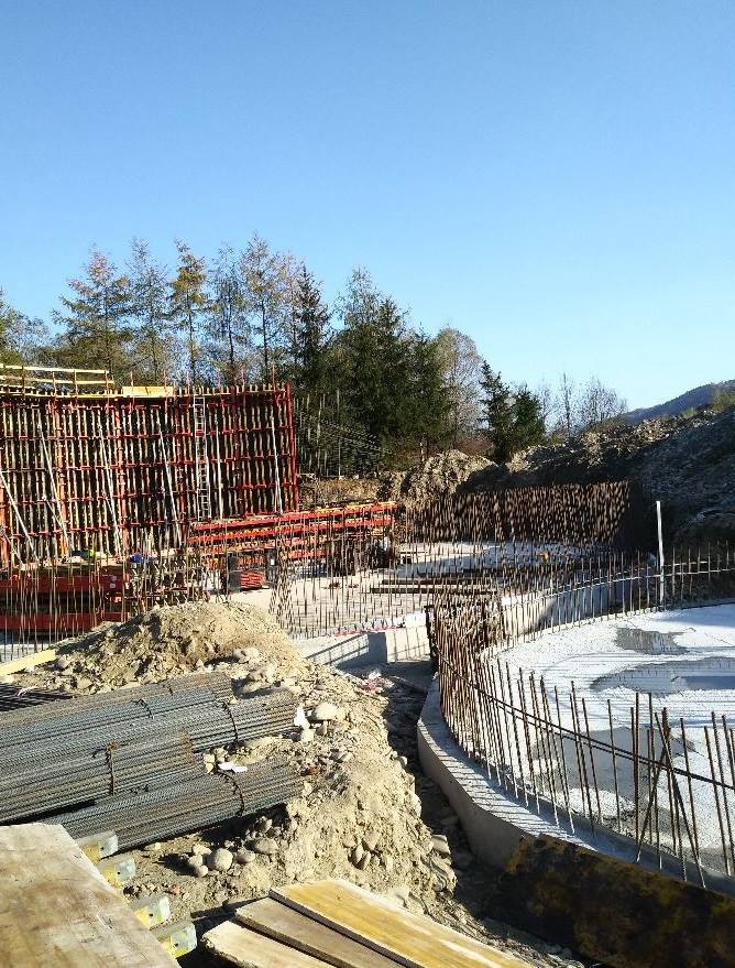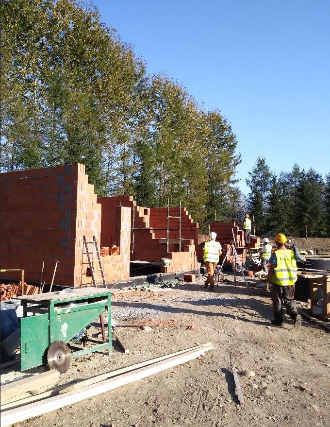 Na obecnym etapie robót trwają prace murarskie budynku mechanicznego oczyszczenia ścieków. Równocześnie trwają roboty związane ze zbiornikiem uśredniającym z pompownią ścieków surowych. Na tym obiekcie wykonano płytę denną i są wykonywane roboty zbrojarskie. Na obiekcie nr 3A – Reaktor biologiczny wykonano płytę denną i trwają prace zbrojarskie ścian, oraz montaż szalunków. Jednocześnie są wykonywane roboty ziemne. Wykonano wykop pod obiekt nr 2 – budynek techniczny.