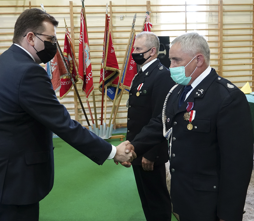 Podczas spotkania, które prowadził zastępca Miejskiego Komendanta Państwowej Straży Pożarnej Paweł Motyka, wojewoda Łukasz Kmita odznaczył Brązowym Krzyżem Zasługi druha Mariusza Grucę i Roberta Przetacznika. Odznaczenia zostały przyznane przez prezydenta RP Andrzeja Dudę. Grawertony i dyplomy wręczali także strażakom burmistrz Grybowa Paweł Fyda i wójt gminy Grybów Jacek Migacz.