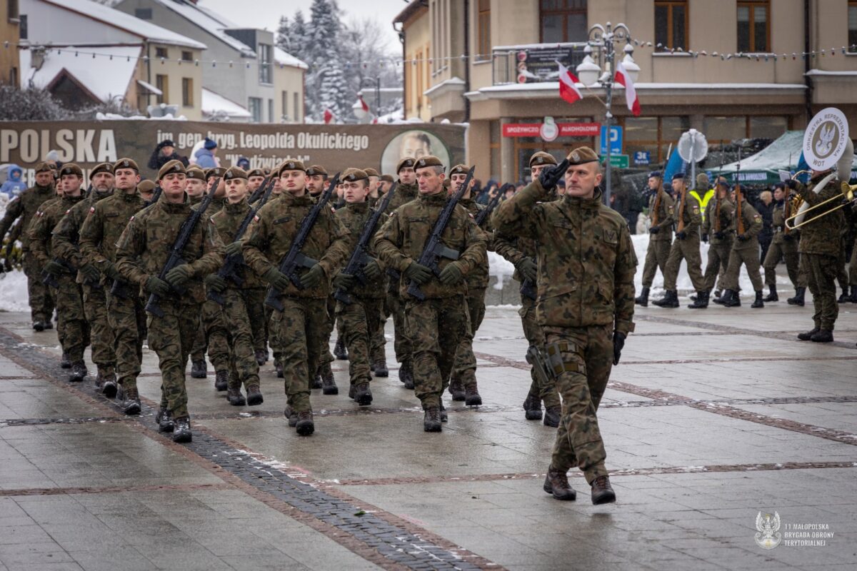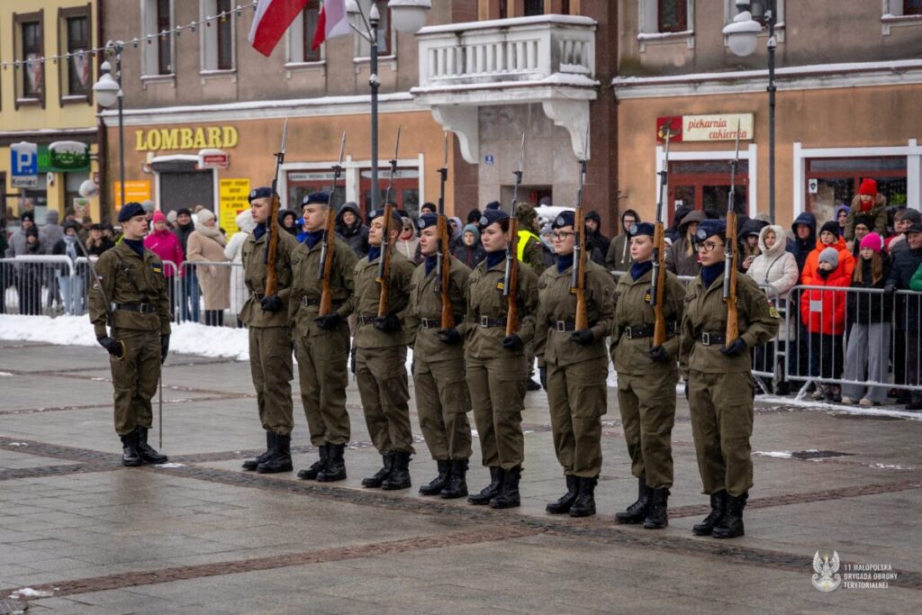 W niedzielę, 15 lutego 2026 roku, na Rynku w Trzebini żołnierze 11 Małopolskiej Brygady Obrony Terytorialnej im. gen. bryg. Leopolda Okulickiego ps. „Niedźwiadek” złożyli uroczystą przysięgę wojskową. Wydarzenie było zwieńczeniem szkolenia podstawowego, tzw. „szesnastki”, realizowanego w ramach projektu „Ferie z WOT”.