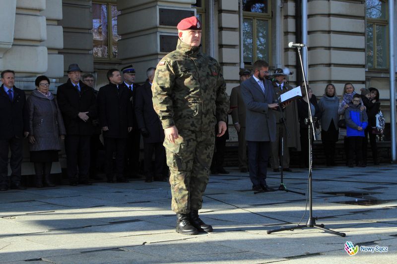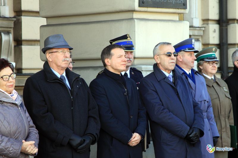 Do gratulacji dołączył także poseł na Sejm RP Jan Duda – Wysłuchaliśmy dzisiaj przysięgi. Przysięga to coś co zostawia swoje trwałe piętno na naszym życiu. Ja gratulując wam pojęcia się tej służby przede wszystkim gratuluję rodzicom, że was tak wspaniale wychowali. Gratuluje waszym wychowawcom i komendantowi, że tu was tu zgromadził. Sądecczyzna, ta nasza mała ojczyzna, jest z was niezmiernie dumna, dumny jestem i ja, że tu na tym nowosądeckim Rynku składacie przysięgę, gdzie dla was najważniejsze są honor, Bóg i Ojczyzna. Tego wam serdecznie gratuluję – powiedział Jan Duda.