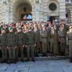 Gratulacje i podziękowania młodym strzelcom złożył zastępca prezydenta Wojciech Piech. – To wielki, piękny dzień, ponieważ dzisiaj składacie ślubowanie, poświadczacie publicznie wobec innych swoje przywiązania do najważniejszych wartości, jakie kryją się za tradycją ruchu strzeleckiego. Takich jak ojczyzna, niepodległość, wierność i honor. Dziękuje wam za to, że podjedliście tę decyzję, która mam nadzieję, będzie miała swój dalszy ciąg w waszym życiu. Chciałbym, żebyście równie skutecznie, jak czyniliście to w szkole, jak czynicie to na manewrach, słyszymy o waszych sukcesach, żebyście podobne sukcesy odnosili później w życiu. Jesteście dla nas nadzieją i gwarancją przyszłego bezpieczeństwa. Jesteście ostoją w trudnych czasach, które mamy nadzieję, że nie nadejdą. Jesteście krwią z krwi i kością z kości tej ziemi i tej społeczności. Jesteście dowodem tego, że patriotyzm przetrwał długie lata zaborów, przetrwał lata dwóch wojen światowych, przetrwał kilkadziesiąt lat sowieckiej dominacji. Jesteście dowodem patriotycznego wychowania waszych dziadków i rodziców za co im serdecznie dziękuję. W imieniu prezydenta miasta Ryszarda Nowaka chciałbym wam życzyć determinacji, wytrwałości, codziennych zwycięstw nad sobą, swoimi słabościami i wyzwaniami, które przyniesie życie – powiedział Wojciech Piech.