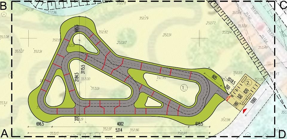 Poniżej przedstawiamy projekt koncepcyjny obrazujący lokalizację, kształt i wymiary toru.