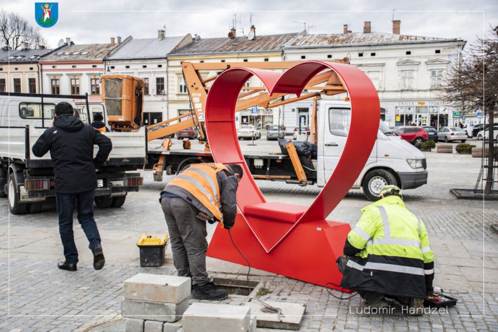 Na płycie nowosądeckiego Rynku rozpoczął się montaż serca, przy którym będzie można zrobić sobie zdjęcie.