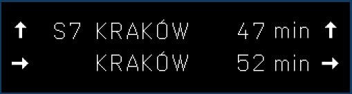 Analogiczna informacja o czasie przejazdu wyświetlana jest także dla kierowców jadących DK7 od strony granicy państwa ze Słowacją w miejscowości Chyżne w kierunku Krakowa. Pojawia się ona na tablicy świetlnej także przez węzłem Zabornia S7.