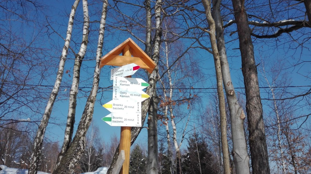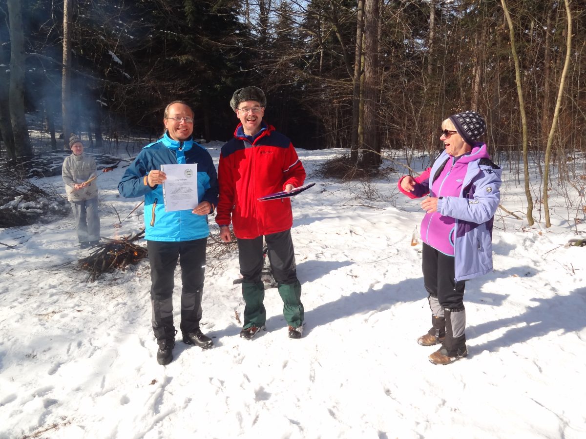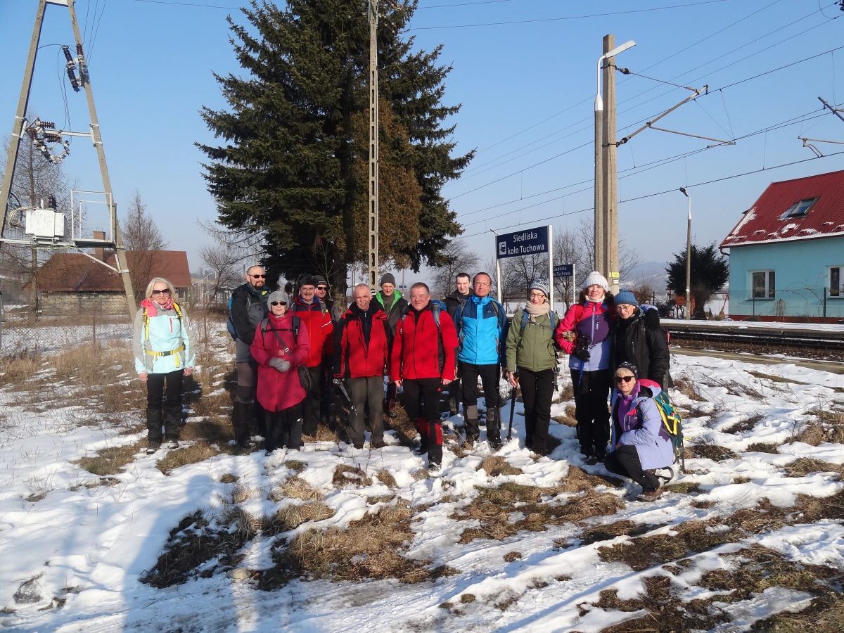 Już na początku 2017 roku stanęło przed grupką wytrawnych pttk-owskich piechurów kolejne wyzwanie: żółty szlak prowadzący z Dynowa nad Sanem w województwie podkarpackim do Siedlisk koło Tuchowa w województwie małopolskim. Całość trasy to około 130 kilometrów prowadzących Pogórzami Karpackimi: Dynowskim, Strzyżowskim oraz Ciężkowickim. Przejście tym szlakiem to nie lada gratka dla tych, którzy lubią piesze wędrówki po terenach troszkę niższych niż Beskidy. Wędrówkę zaczęliśmy 29 stycznia 2017 roku aby po siedmiu etapach, w różnych warunkach pogodowych, w pobliżu Polany Morgi nieopodal Brzanki (536m), na końcowym już odcinku żółtego szlaku, przy ognisku, móc cieszyć się z sukcesu jakim było „zaliczenie” całego szlaku. Stało się to w niedzielę 4 marca. Nie zabrakło oczywiście nagrody w postaci dyplomów – listów gratulacyjnych dla najwytrwalszych – otrzymanych od organizatorów.