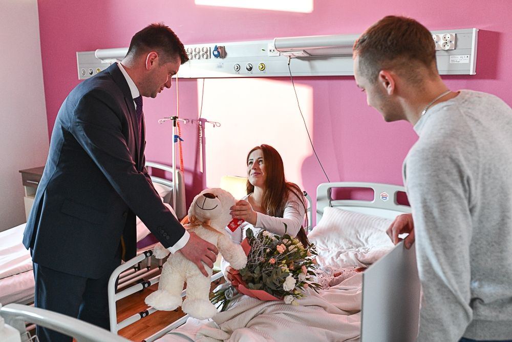 Gratulacje podczas odwiedzin nowo narodzonych dzieci w imieniu władz województwa złożył rodzicom wicemarszałek Łukasz Smółka. Rodzice maluchów otrzymali prezenty i symboliczne czeki na wyprawkę dla dzieci.