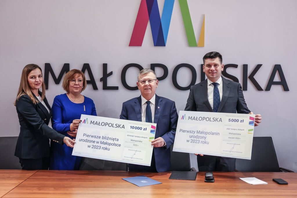 Samorząd Województwa Małopolskiego przekazał czeki na pierwszą wyprawkę dla dzieci. Pierwszy Małopolanin otrzymał 5 tys. zł, natomiast bliźniaki 10 tys. zł.