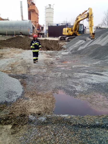 W czwartek około godz. 16 zauważono wyciek nieokreślonej ilości oleju opałowego z zakładu wytwórni mas bitumicznych, który znajduje się na terenie Kopalni Surowców Skalnych w Klęczanach.