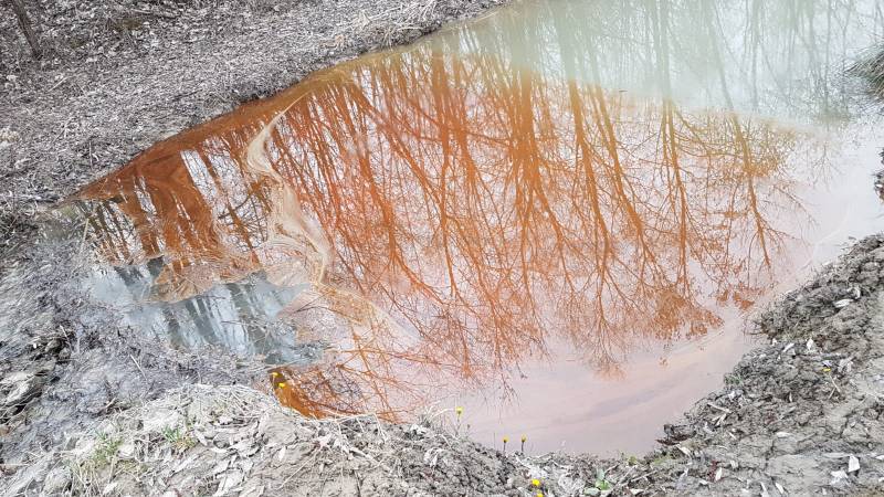 Wyciek oleju opałowego w Klęczanach. Zanieczyszczona gleba i potok