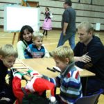 W hali sportowej Miejskiego Sportu i Rekreacji publiczność obserwowała zmagania pięciu sądeckich rodzin, które mierzyły się w konkurencjach zarówno natury sprawnościowej, jak i artystycznej. Tatusiowie musieli pokonać na czas na dystans siedząc, leżąc (lub coś koło tego) na deskorolce, Dodatkowym utrudnieniem była głowa bałwana, którą trzeba było dowieźć do mety. Rodziny pokonywały także slalom prowadząc piłeczkę za pomocą kija hokejowego i ze stosem prezentów, których nie wolno było upuścić. Wiele ambarasu sprawiła konkurencja polegająca na zasznurowaniu wysokich butów do tańca ludowego. Okazało się to nie takie proste.