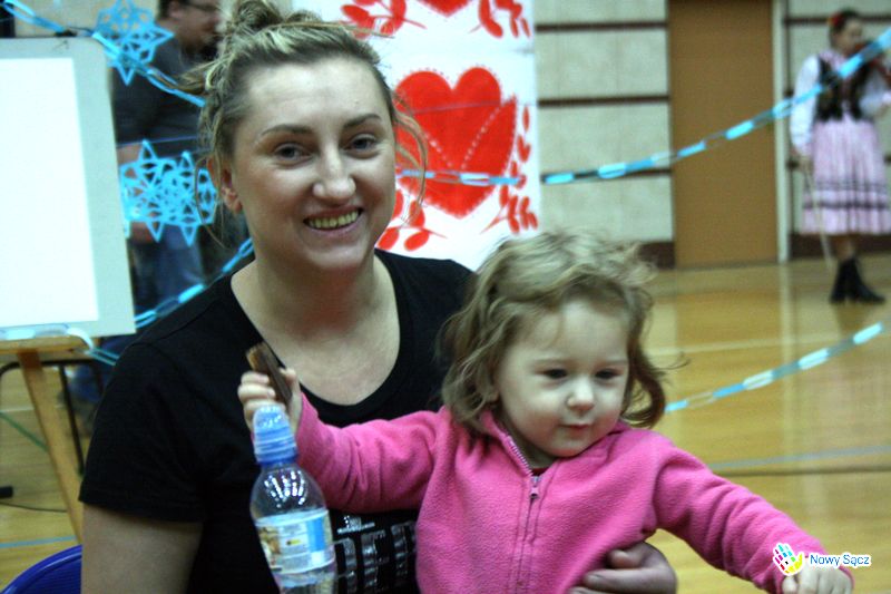W hali sportowej Miejskiego Sportu i Rekreacji publiczność obserwowała zmagania pięciu sądeckich rodzin, które mierzyły się w konkurencjach zarówno natury sprawnościowej, jak i artystycznej. Tatusiowie musieli pokonać na czas na dystans siedząc, leżąc (lub coś koło tego) na deskorolce, Dodatkowym utrudnieniem była głowa bałwana, którą trzeba było dowieźć do mety. Rodziny pokonywały także slalom prowadząc piłeczkę za pomocą kija hokejowego i ze stosem prezentów, których nie wolno było upuścić. Wiele ambarasu sprawiła konkurencja polegająca na zasznurowaniu wysokich butów do tańca ludowego. Okazało się to nie takie proste.
