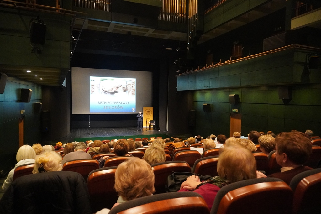 Prelekcję zorganizowano 2 marca br. w sali kinowej MCK Sokół w Nowym Sączu, a wzięło w niej udział około 100 seniorów. Podczas wykładu sądecki policjant przypominał najważniejsze zasady bezpieczeństwa osób starszych, a przede wszystkimi skupił się na przedstawieniu metod działania przestępców wyłudzających pieniądze, podając się w rozmowie telefonicznej za krewnych, funkcjonariuszy, prokuratorów czy pracowników instytucji. Mundurowy przedstawił statystyki dotyczące tego rodzaju przestępstw, podał przykłady oszustw oraz radził, jak nie wpaść w sidła przestępców. Ponadto zachęcał wszystkich uczestników do udziału w warsztatach pod hasłem „Świadomy, to bezpieczny senior – BĄDŹ CZUJNY”, które zostaną zorganizowane 1 kwietnia br. przy parafii Matki Bożej Niepokalanej w Nowym Sączu, podczas których będzie można m.in. obejrzeć inscenizację dotyczącą tzw. oszust na wnuczka.