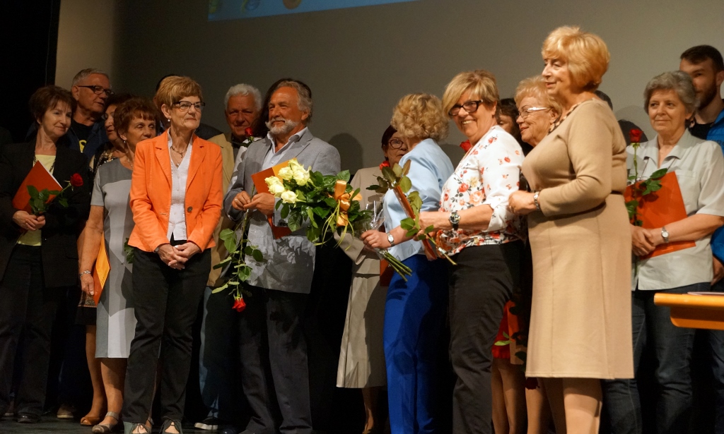 Spotkanie w sali im. L.Lipińskiego w Małopolskim Centrum Kultury „Sokół” w Nowym Sączu było okazją do podziękowań dla osób, które na zasadzie wolontariatu głosiły wykłady, prowadziły warsztaty i lektoraty, organizowały wycieczki krajoznawcze, w tym górskie wyprawy dla studentów. List z podziękowaniem za aktywizację seniorów, do prezes Stowarzyszenia Sądecki Uniwersytet Trzeciego Wieku Wiesławy Borczyk skierował starosta nowosądecki Marek Pławiak. Czytamy w nim m.in., że dzięki pracy członków Stowarzyszenia „setki sądeczan po zakończeniu zawodowego życia nie tylko może zdobywać wiedzę i poszerzać horyzonty, ale również czuć się ważnym elementem życia społecznego”.