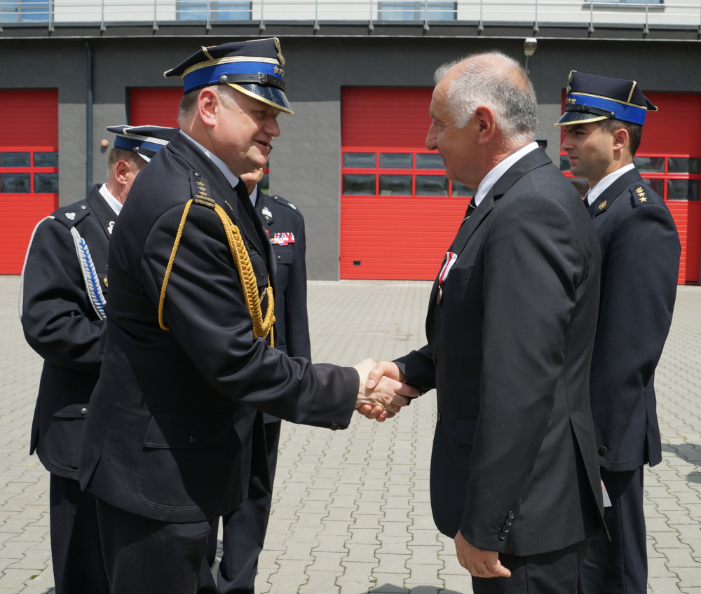 Obchody Powiatowego Dnia Strażaka były okazją do wręczenia odznak resortowych i korporacyjnych, a także awansów na wyższe stopnie. Wręczał je Małopolski Komendant Wojewódzki PSP st. bryg. Marek Bębenek.