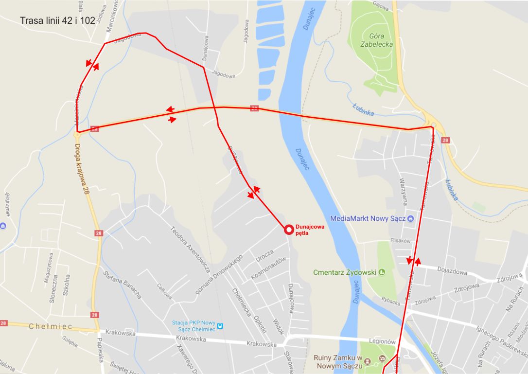 Linia 42 – linia zostaje skrócona do Dunajcowej pętla (nie kursuje przez ul. Krakowską)