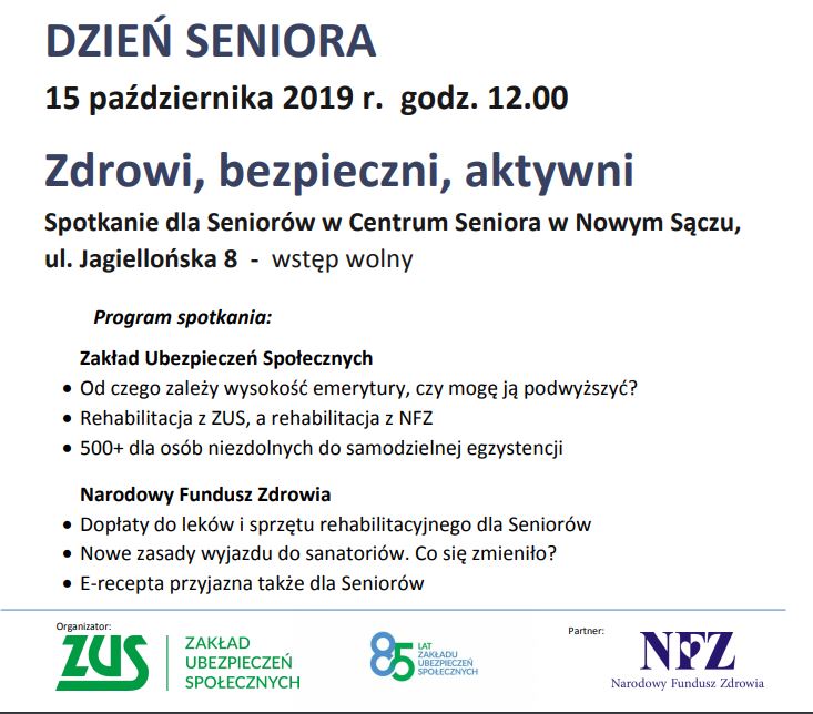 ZUS zaprasza na Dzień Seniora w Nowym Sączu
