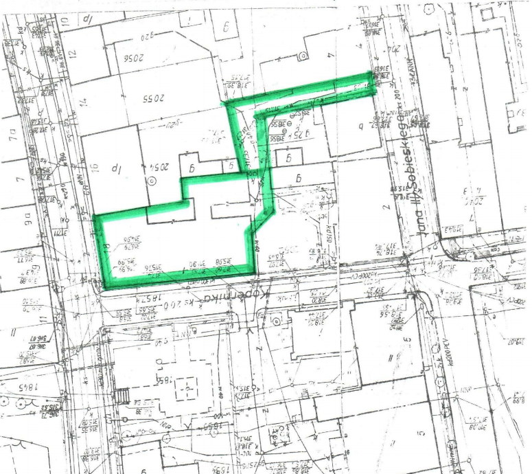 Działki znajdują się w obszarze lokalizacji miasta na prawie magdeburskim z zakazem wtórnego podziału działek. Znajdujący się na nieruchomości budynek wpisany jest do ewidencji zabytków z obowiązkiem odtworzenia formy, natomiast nie jest wpisany do rejestru zabytków woj. małopolskiego. UP – przeznaczenie podstawowe: usługi publiczne, przeznaczenie dopuszczalne: usługi komercyjne; UC – przeznaczenie podstawowe: usługi komercyjne; przeznaczenie dopuszczalne: mieszkalnictwo jednorodzinne. M/U – przeznaczenie podstawowe: mieszkalnictwo i usługi komercyjne; przeznaczenie dopuszczalne: mieszkalnictwo jednorodzinne i usługi wbudowane.