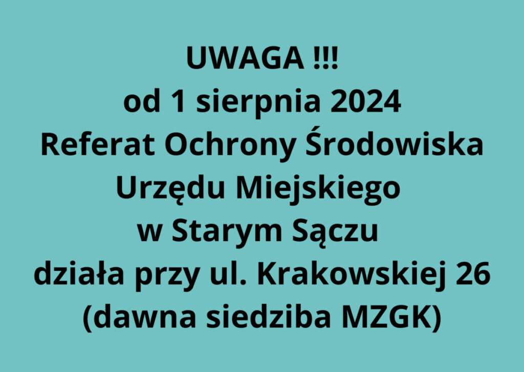 Zmiana siedziby Referatu Ochrony Środowiska w Starym Sączu
