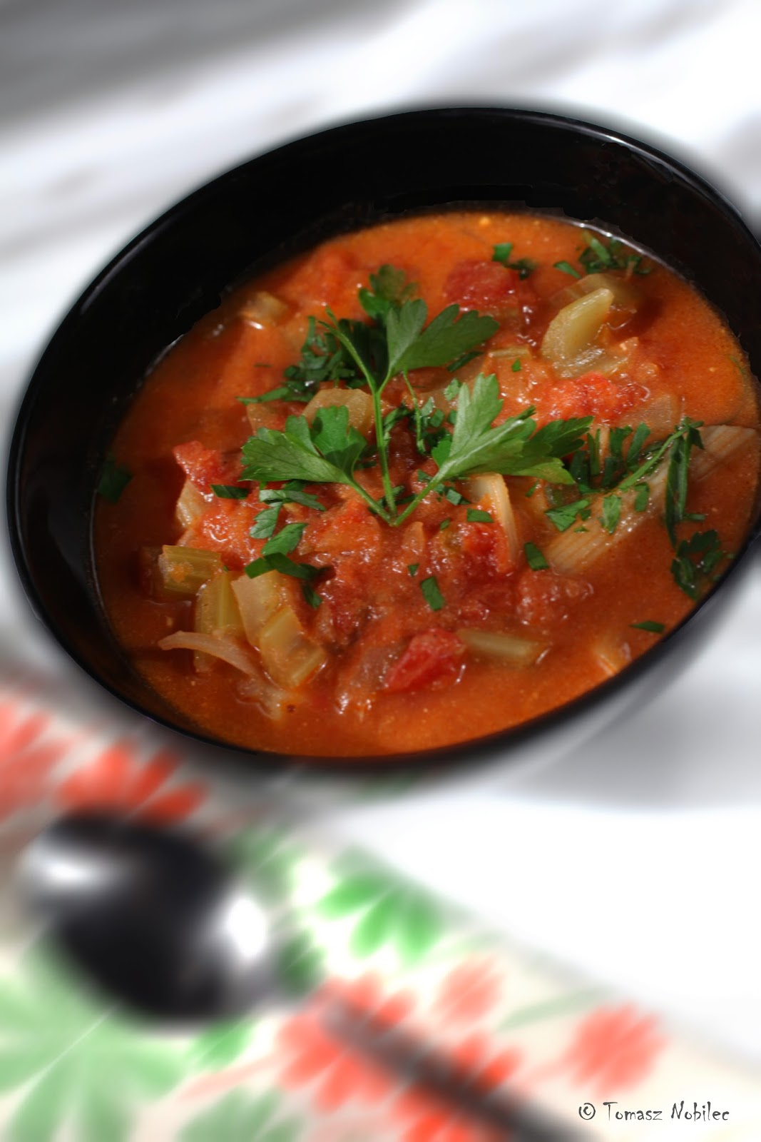 A na obiad znowu pomidorowa…ileż można jeść ją z ryżem. Czas na zmiany. Dzisiaj pierwsza odsłona innej pomidorówki niż tradycyjna.