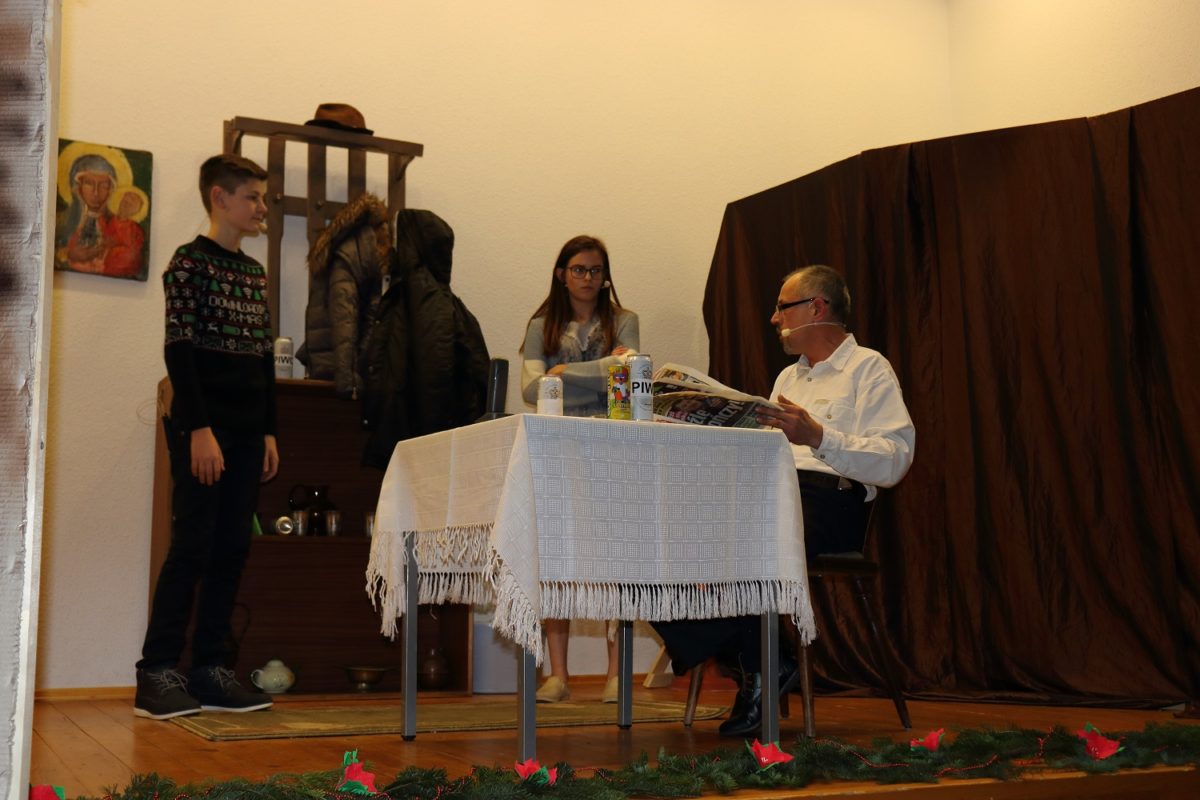 W spektaklu wystąpili członkowie Stowarzyszenia Mieszkańców Barcic oraz przyjaciele Stowarzyszenia, reżyserowała Pani Zofia Trzcińska. Tematem przewodnim sztuki był największy problem obecnych czasów, tj. zabieganie i błędne akcenty w przedświątecznym czasie. Przedstawienie w lekki i żartobliwy sposób pokazało nasze przywary, jednocześnie dało temat do przemyśleń dla wszystkich zebranych. Spektakl został przyjęty bardzo ciepło a aktorzy nagrodzeni gromkimi brawami.
