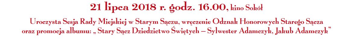 Dzień wcześniej, 21 lipca w Kinie Sokół odbędzie się uroczysta Sesja Rady Miejskiej i wręczenie Odznak Honorowych Starego Sącza oraz promocja albumu” Stary Sącz Dziedzictwo Świętych” -Sylwester Adamczyk i Jakub Adamczyk.