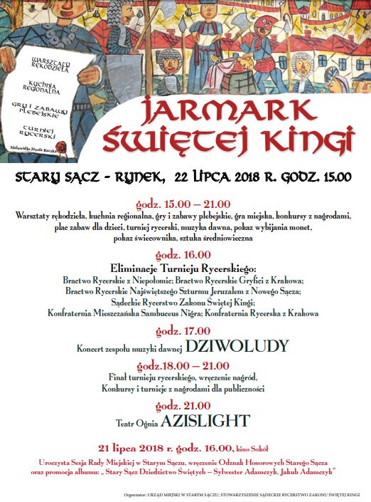 Jarmark św. Kingi w średniowiecznym miasteczku przeniesie nas w XIII wiek. 22 lipca starosądeckim rynkiem zawładną bractwa rycerskie i starodawne warsztaty rzemieślnicze.