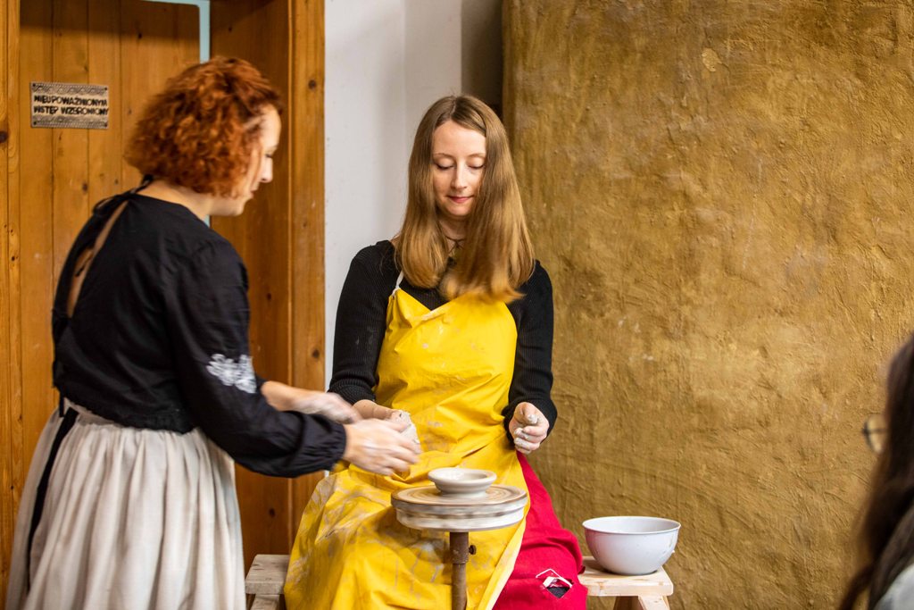 warsztaty garncarskie – w ramach zajęć uczestnicy zapoznali się z gatunkami gliny, sposobami jej oczyszczania i przygotowania, z technikami zdobienia oraz z praktyczną nauką ręcznego modelowania prostych form.